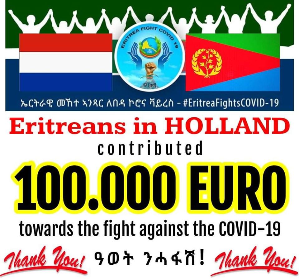Eritreans living in Holland contributed in one week 100,000.00 Euro to gight and combat COVID-19 in Eritrea