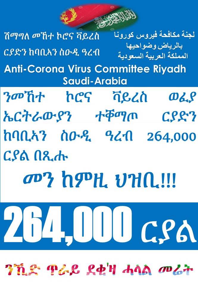 Eritrean In Riyad Contributed Two Hundred Sixty Four Thousands Riyals to fight COVID-19 in Eritrea