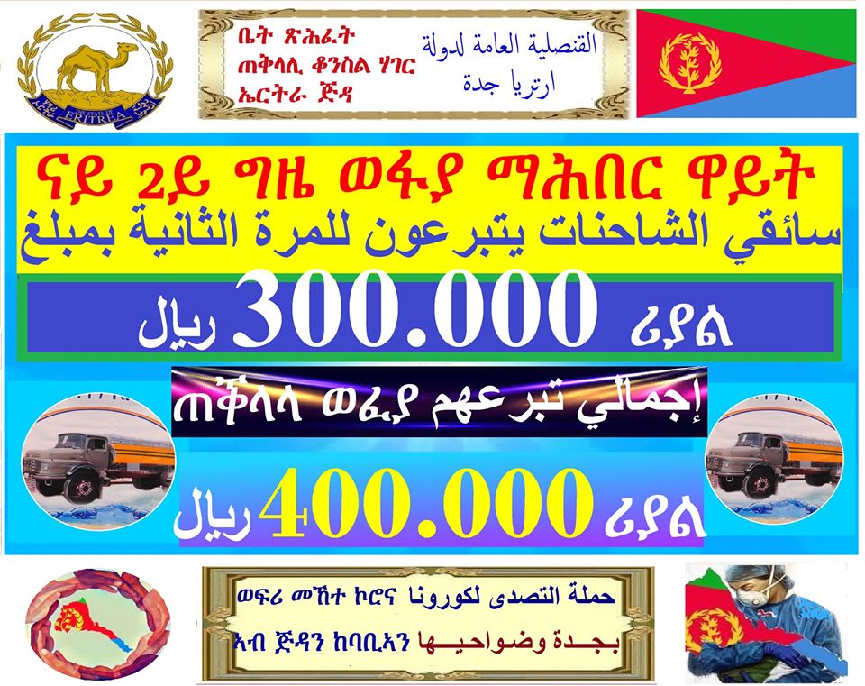 سائقي الشاحنات في جدة وضواحيها يتبرعون ب ٤٠٠ الف ريال لمكافحة الكورونا في ارتريا