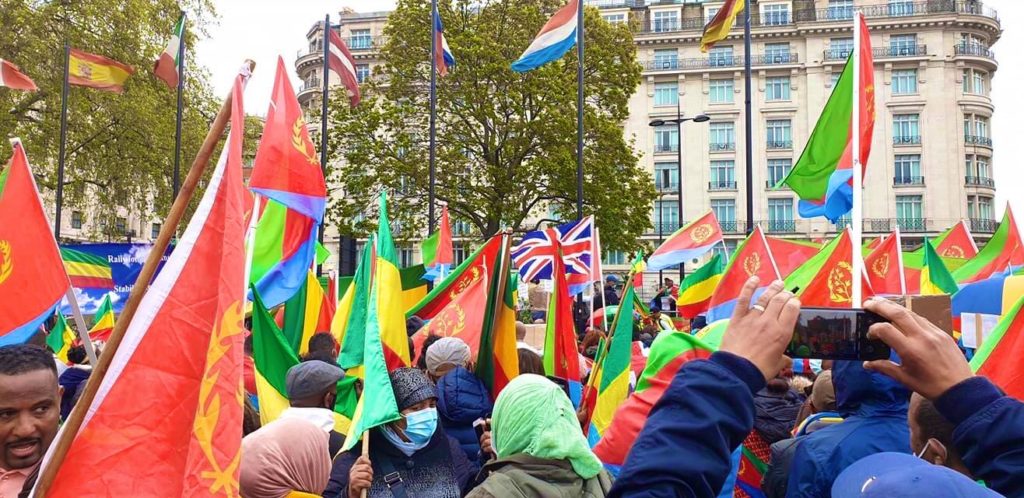On a blustery May Bank Holiday Monday in a wind swept Marble Arch, Eritreans and Ethiopians came together to peacefully demonstrate calling out against the unnecessary and unwarranted intervention of the US and UK in the affairs of the Horn of Africa.